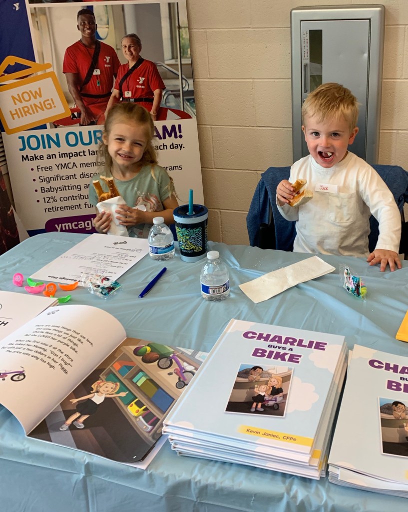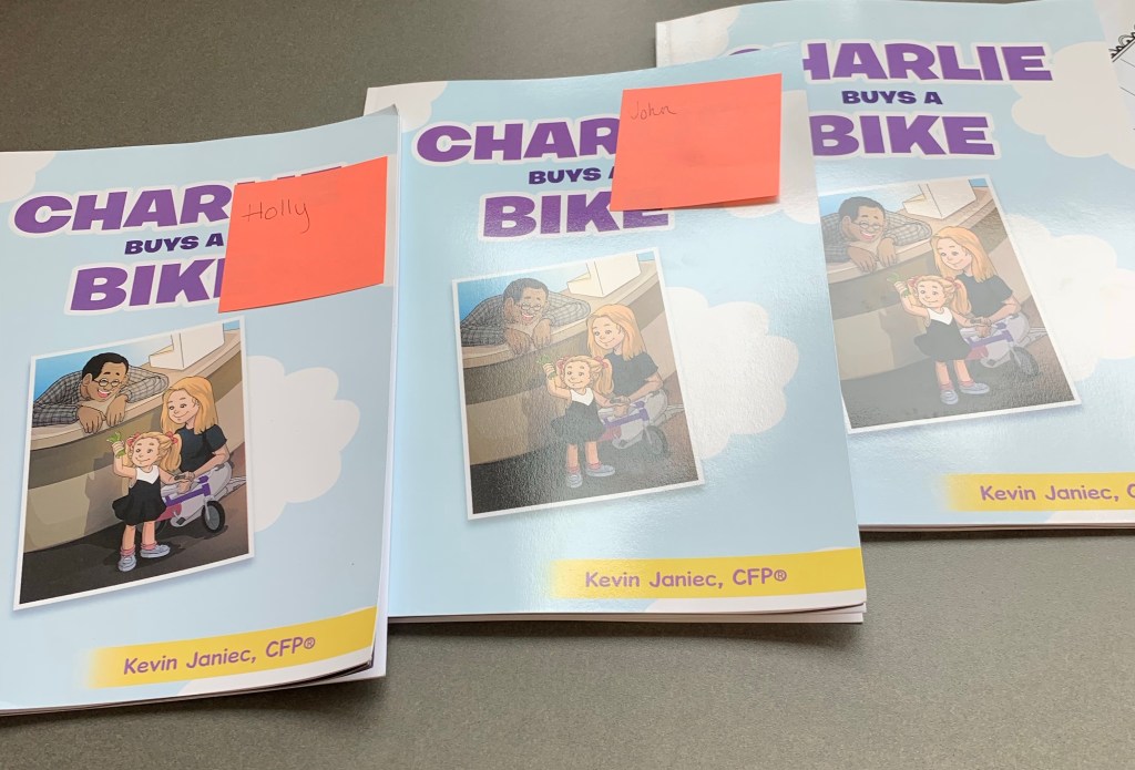 During Financial Literacy Month- otherwise known as April- I went on a Charlie Buys a Bike tour at local schools (including Charlie’s class) to teach kids about saving money. When I first sat down in the tiny plastic chair, I felt a little out of place like Billy Madison. But as I watched the students’ eyes widen with each thoughtful question and insightful answer, I felt a spark being (financially) lit.